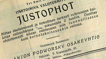 Justophot Exposure Meter Emil Mayer, born in Böhm 1871, is one of the forerunners of modern photography. He took most of his pictures of an urban scenery. His occupation was an attorney and a photographer but besides he was an inventor. One of his seven patents is this optical light meter "Justophot". I have tried to resolve how it works but still I am not totally aware of its function. In the manual is written that the use "seems" complicated but despite the fact it is simple. You have to look towards the object through the meter and turn a ring until you cannot anymore see the back lighted numbers inside the meter. At this position you can read the proper adjustments. The extinction meter, as this is, will only give a correct answer if you have been in the same light conditions for a couple of minutes. When looking through the meter you have to read the numbers quickly rather than peer at them for a long time as otherwise the eye adjusts to the light. Pretension that you get absolutely and scientifically correct exposure values seems to be a bit exaggerated, similar to those we are accustomed to see in TV-Shop commercials. "Drem", which is the manufacturer, was an Austrian company in Vienna. Austria has a long and famous tradition in high class optical and mechanical industry. Remember such brands like Swarovski and Eumig. |